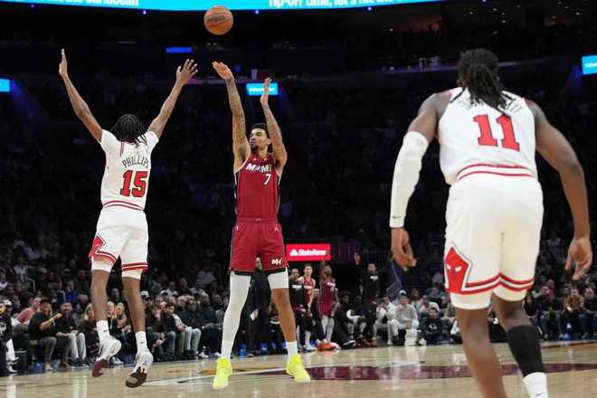 熱火上一場客場116-113險勝公牛,公牛過去3場連輸湖人、步行者與熱火遭遇3連敗,本賽季前兩次交鋒熱火均客場戰勝公牛。本場熱火缺少鮑威爾、希羅、米切爾與羅齊爾,公牛缺少吉迪、懷特、武切維奇等。首節前4分半鐘熱火3-12落后,熱火連追5分,公牛連得4分。熱火持續反撲追到17-20落后,卡特三分命中,維金斯三分回敬,公牛內外開花擴大9分優勢。熱火再追3分,首節結束熱火25-31落后公牛。首節公牛24中12,其中三分11中4,熱火26中9,其中三分12中3。